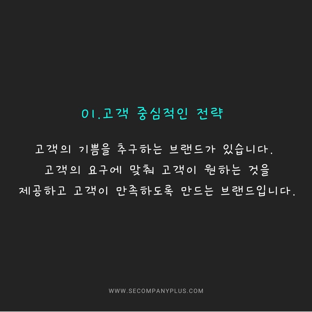 °í°´ÀÇ ¿ä±¸¿¡ ¸ÂÃç °í°´ÀÌ ¿øÇÏ´Â °ÍÀ» Á¦°øÇÏ°í °í°´ÀÌ ¸¸Á·Çϵµ·Ï ¸¸µå´Â ºê·£µåÀÔ´Ï´Ù.